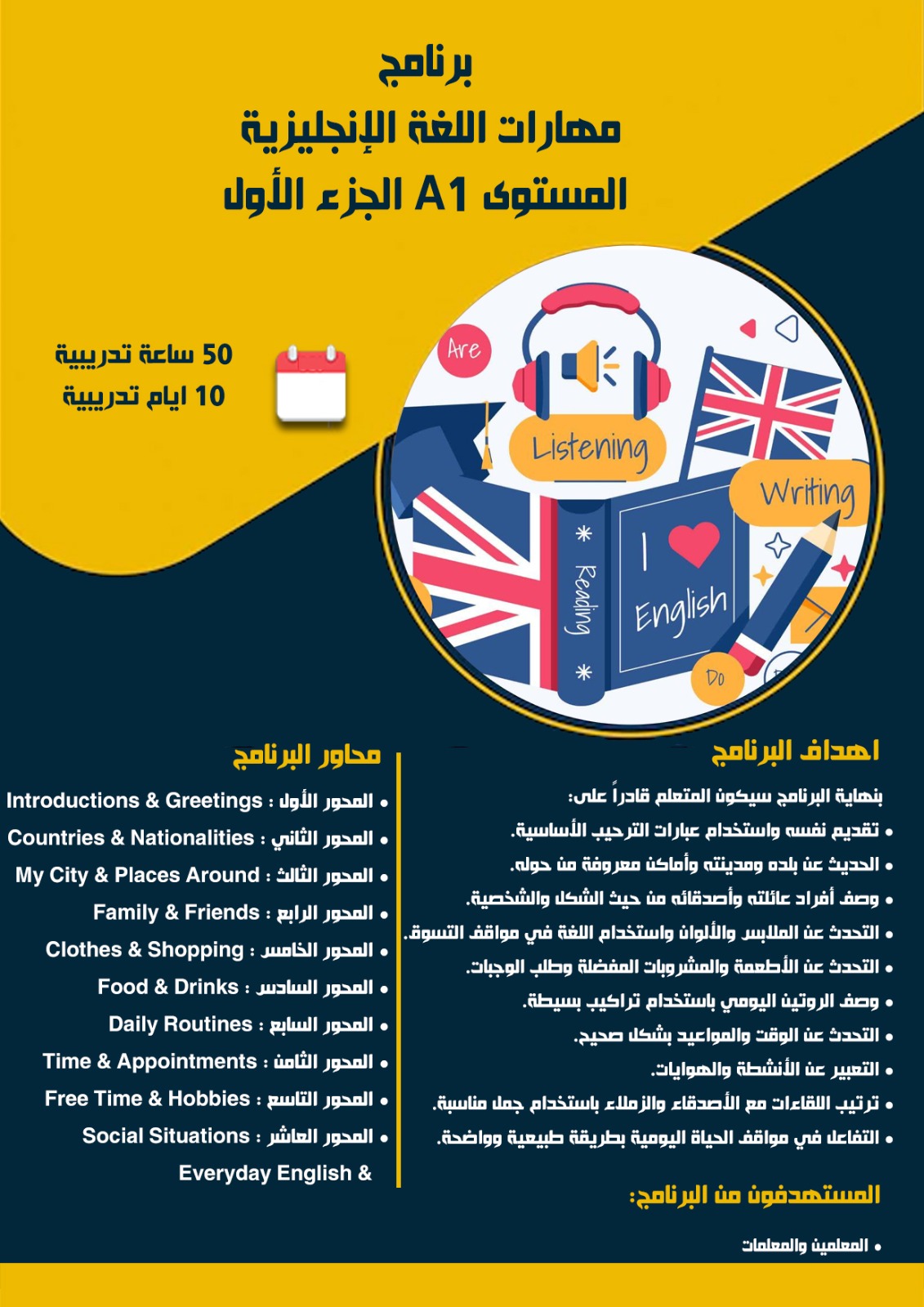 يتمكن المشارك من تقديم نفسه بلغة بسيطة واستخدام عبارات ترحيبية أساسية.